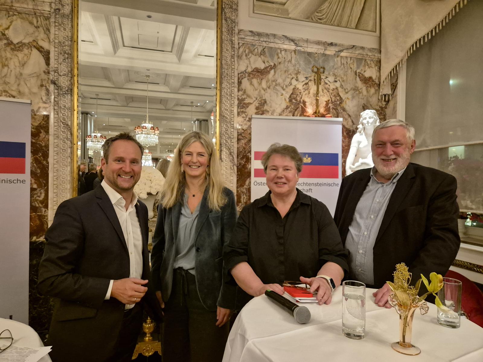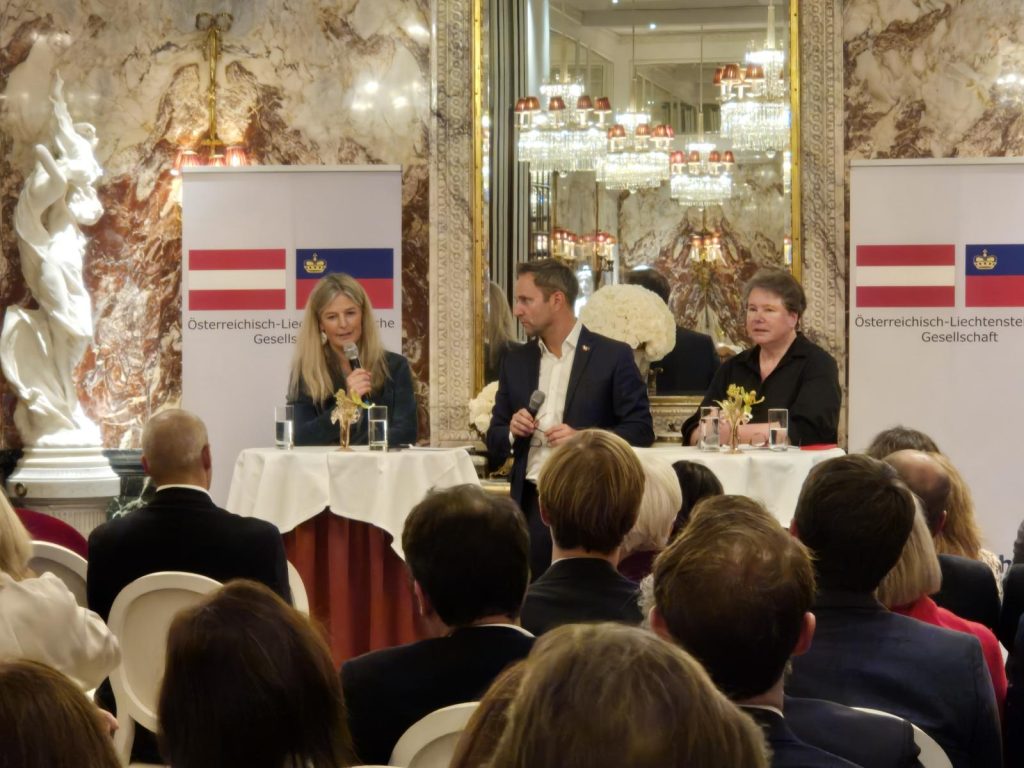 Moderiert von Präsident Matthias Strolz fand am 18. November 2024 ein Kamingespräch im Hotel Sacher mit den beiden Ehrenpräsidentinnen Maria-Pia Kothbauer und Tatjana von Lattorff zum Thema „How to Liechtenstein“ statt. Mit mehr als 80 Gästen war dies die größte Veranstaltung unserer Gesellschaft bisher. Mit sehr großem Interesse wurden die Ausführungen zum Fürstentum tiefgreifend beantwortet. Auch die Mitglieder erhielten die Möglichkeiten direkt Fragen zu stellen. Unterstützt wurde die Veranstaltung durch das Hotel Sacher und die Liechtenstein Gruppe.